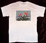 Description:  From Hand Painted "Birds of Paradise" .On Best Quality American Made Heavyweight White Tee Shirt