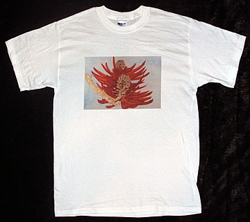 Description:  From Hand Painted "Coral Tree Flowers #1".On Best Quality American Made Heavyweight White Tee Shirt