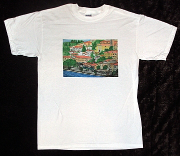 Description:  From Hand Painted."Lago DiGrada Italy".On Best Quality 100 Cotton,American made Heavyweight White Tee Shirt.