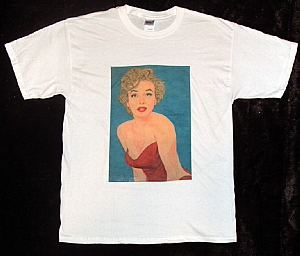 Description:  From Hand painted."Marylin in Red Dress".On Best Quality 100% Cotton,American made Heavyweight White Tee Shirt