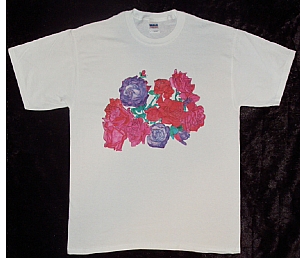 Description:  From Hand Painted "Roses from Chartres #1".On Best Quality 100% Cotton, American made Heavyweight White tee Shirt